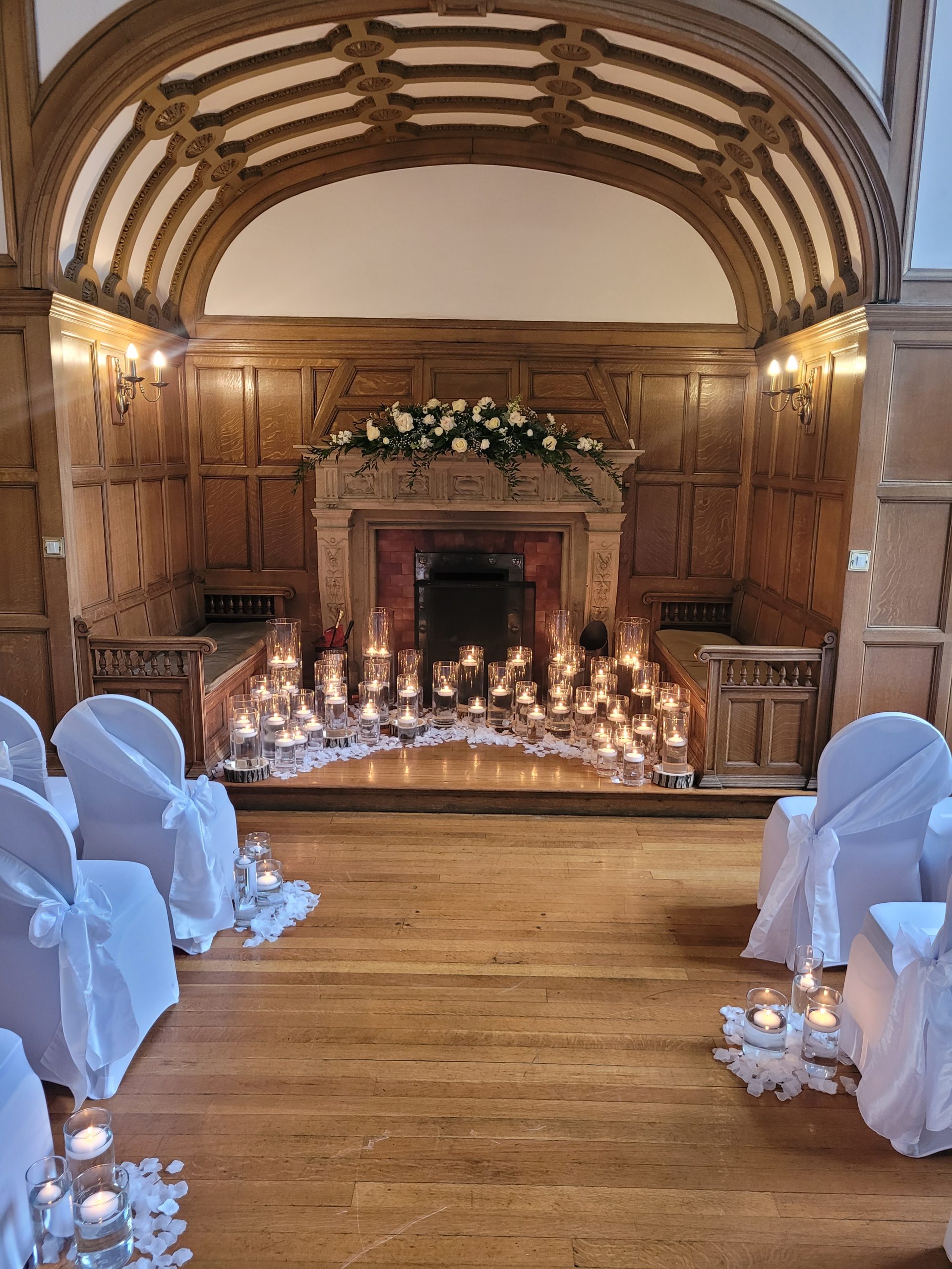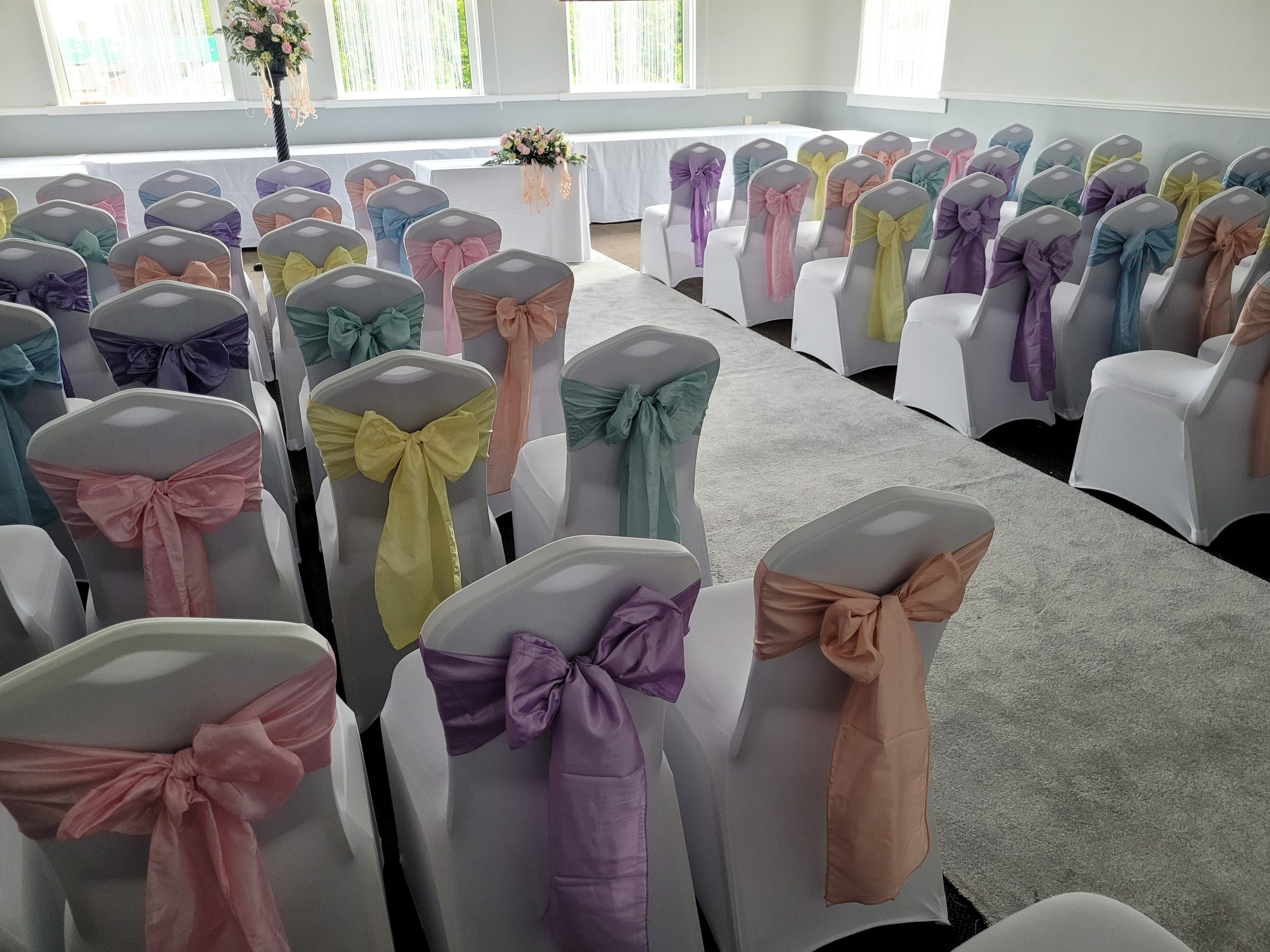 Wedding Aisle Runner 80 White Chair Covers 80 Chair Sashes White Sparkly Wedding Backdrop at Alter